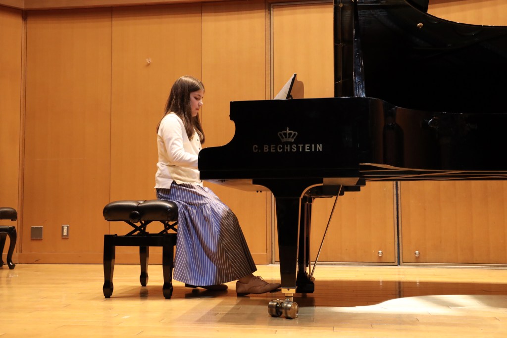 Besonders war in diesem Jahr die große instrumentale Vielfalt, die unser Konzertprogramm bereichert hat. Neben der bewährten Klaviermusik erklangen erstmals auch die sanften Töne einer Harfe, die strahlenden Klänge einer Trompete sowie mehrere Geigen, die das Publikum mit ihren feinen Melodien verzauberten. Diese bunte Mischung aus klassischen und modernen Stücken zeigte eindrucksvoll, wie vielseitig und lebendig unser musikalisches Schulleben ist.